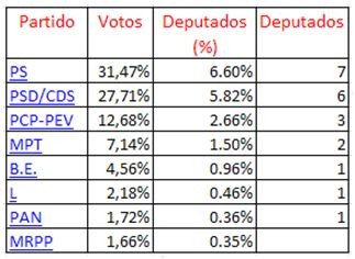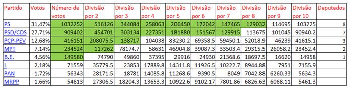 Desta maneira os partidos Livre e o PAN teriam tido 1 deputado cada, que devido ao método de D’Hondt foram parar ao PS e ao PSD/CDS.