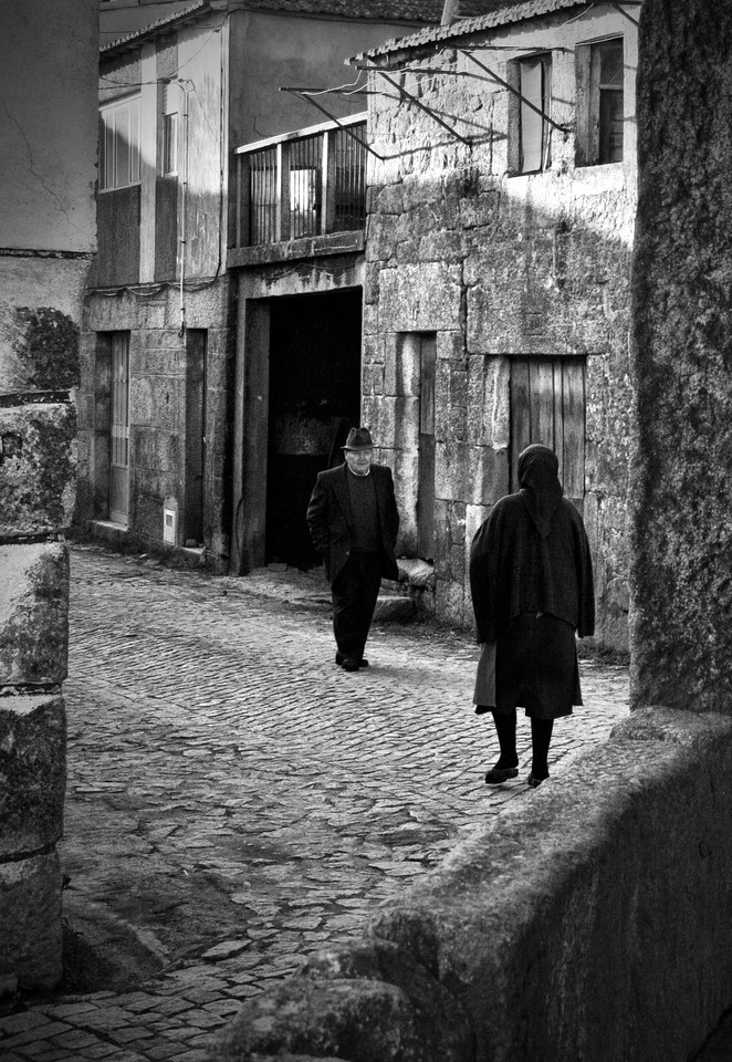 Perdem-se na névoa dos dias, a mesma que lhes humedece o olhos e turva o olhar. Sabem que são os resistentes, os últimos. Saudades já não têm, perderam-nas em esperas inúteis, vestem de escuro, de preto, é nele que conjugam as juras eternas, nunca cantaram o fado, o triste fado, mas de terem andado abraçados a ele toda uma vida, conhecem-no tão bem como a palma das suas mãos e há muito sabem que quem se perde no nevoeiro, jamais regressará. Restam-lhes as horas de um relógio com ponteiros que teimam após cada volta dar outra volta, mas sabem que um dia, quando não tiverem quem lhes dê corda, os ponteiros pararão.