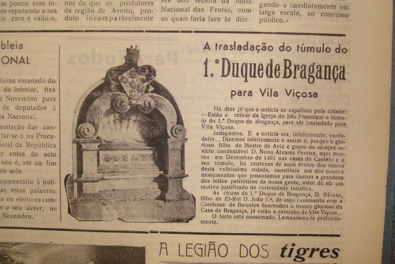 D.Afonso, I Duque de Bragança foi sepultado em Chaves e em Chaves se manteve sepultado durante 481 anos, ou seja desde 1461 até 1942, ano em que nos roubaram o seu túmulo para o levar para Vila Viçosa, no Alentejo.